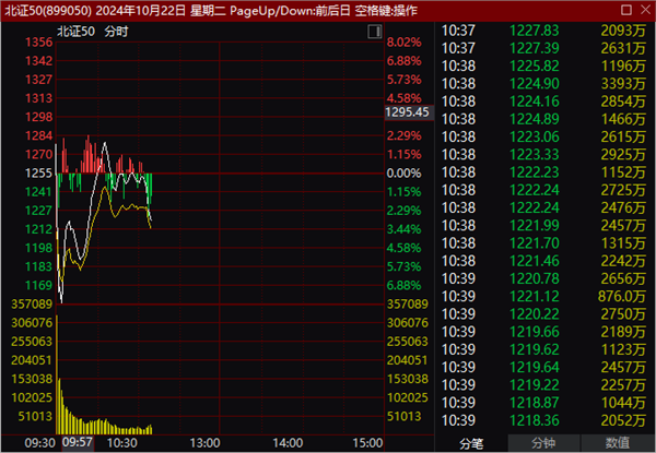 A股市场今天早盘低开,整体窄幅震荡。不过,北证50指数波动剧烈,盘中巨震近10%。昨天该指数刚暴涨16.24%,短短一个月时间自低位已翻倍。